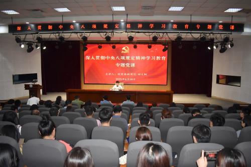 6月26日下午,校党委副书记田义轲就深入贯彻中央八项规定精神学习教育讲专题党课
