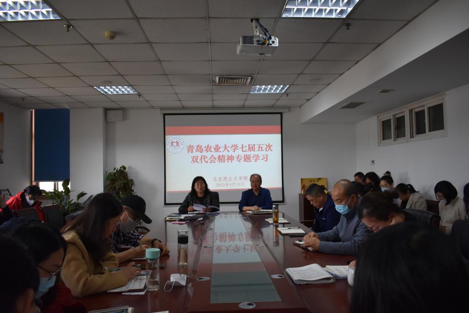 4月13日下午,williamhill威廉希尔于会议室召开全体教职工会议,学习贯彻学校七届五次双代会精神。学院党总支书记修彩波主持,全体教职工与会。