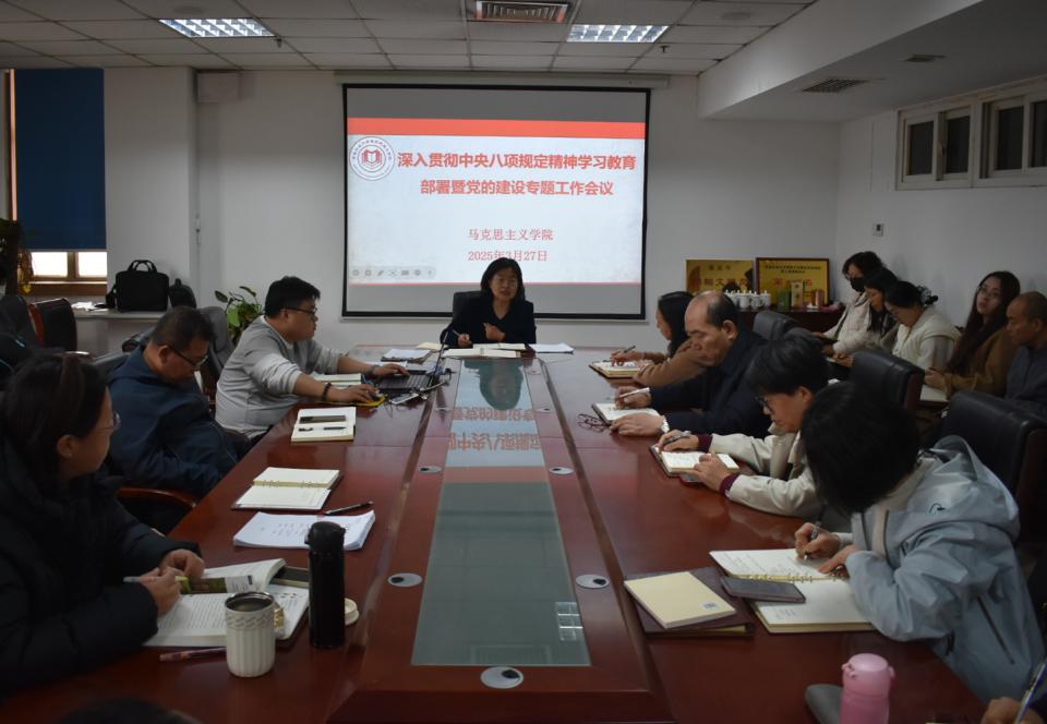 会上,修彩波传达了学校深入贯彻中央八项规定精神学习教育工作部署会议精神,详细介绍了学院学习教育工作相关安排,强调了此项工作的重要意义。随后,又带领大家深入学习《习近平关于加强党的作风建设论述摘编》中的《党的作风关系人心向背,决定党和国家事业成败》章节。学习过程中,紧密联系学院日常教学、科研以及行政管理等实际工作,提出了一系列具有针对性、可操作性的落实举措,力求将中央八项规定精神精准融入学院工作的各个环节。