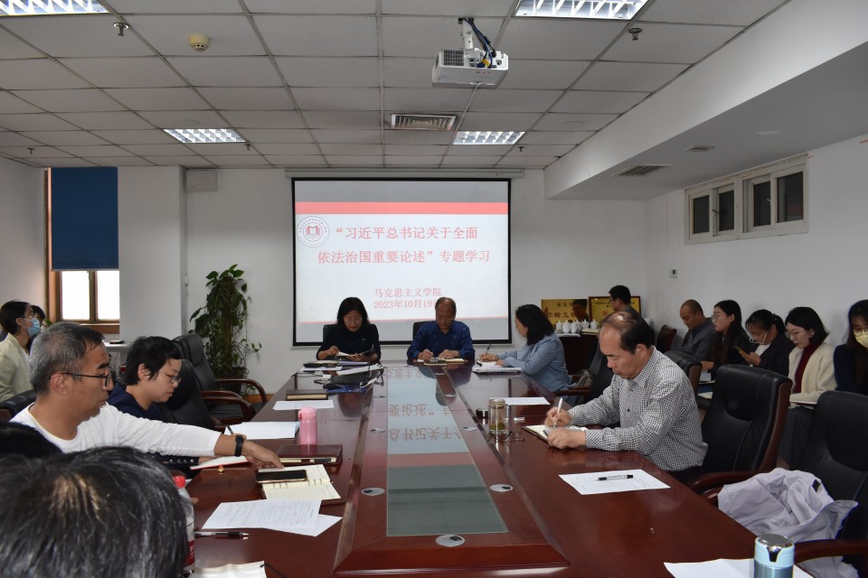 2023年10月19日下午,williamhill威廉希尔组织教职工理论学习,专题学习习近平法治思想。会议由学院党总支书记修彩波主持,学院全体教工参加。