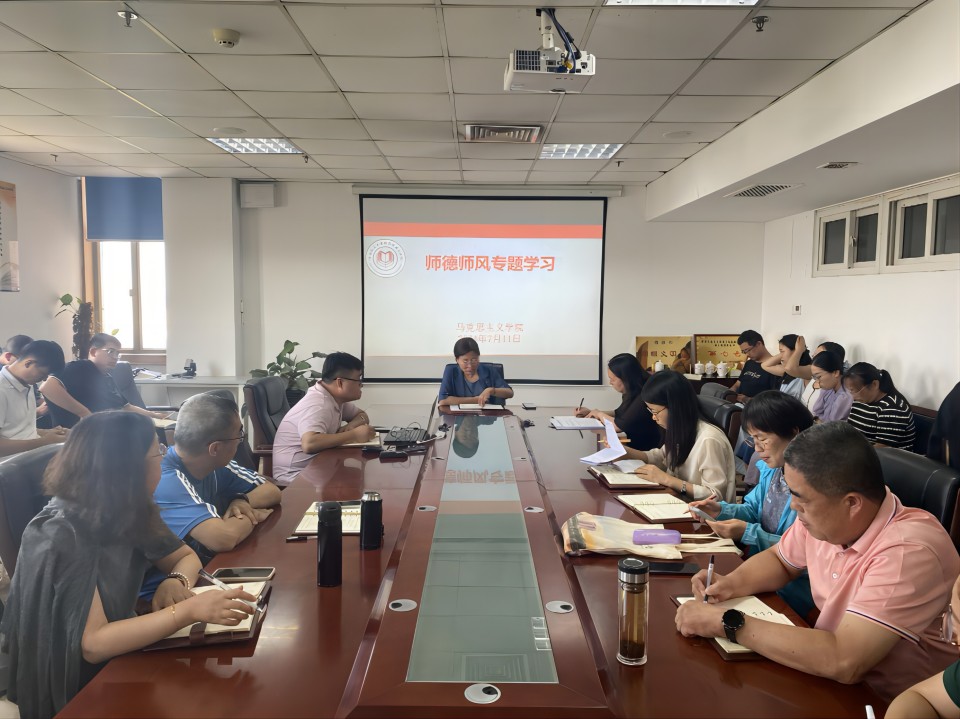 为进一步规范高校教师履职履责行为,强化思政课教师职业道德,弘扬新时代高校教师道德风尚,提升思政课教学效果,2024年7月11日下午,williamhill威廉希尔召开师德师风建设专题会议,会议由学院党总支书记修彩波主持,学院全体教师参加。