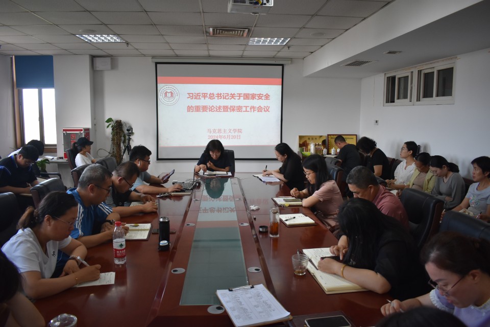 6月20日,williamhill威廉希尔召开学习习近平总书记关于总体国家安全观的重要论述暨保密工作会议,党总支书记修彩波主持会议,全体教职工参加。