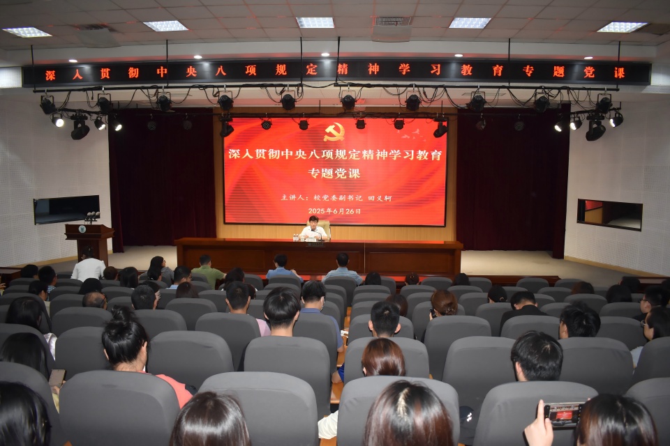 6月26日下午,校党委副书记田义轲就深入贯彻中央八项规定精神学习教育讲专题党课。
