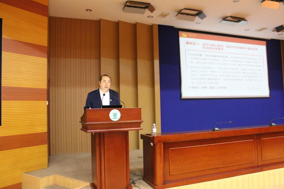 校长刘新民为分管单位的党员干部和学生骨干作党史学习教育专题宣讲。刘新民以“传承红色基因,推进伟大事业”为题指出,开展党史学习教育是牢记初心使命,推进中华民族伟大复兴历史伟业的必然要求;是坚定信仰信念、在新时代坚持和发展中国特色社会主义的必然要求;是推进党的自我革命,永葆党的生机活力的必然要求。