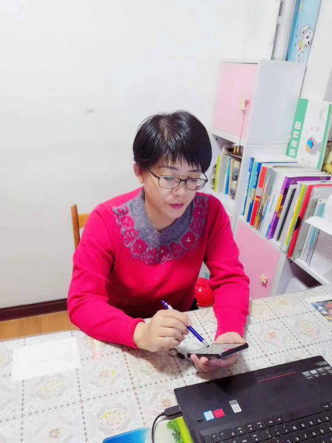 “从紧张焦虑到从容应对”,谈到自己首次在线授课感受,秦秋老师如是说。“资料上传的地方对不对?有没有点保存?学生那边能不能正常打开?虽然之前也多次参加培训,但毕竟是第一次上网课,别提有多紧张了!甚至睡觉之前都会插上耳机听讲课。”为了上好第一课,秦秋老师做了充分准备:设置针对性话题,精心编辑讲授内容,增加相关练习,QQ群里发送内容小结……“随着课程的顺利开展,面对学生纷纷给出的“比心”表情,最初的紧张变成了应对学生提问的从容和学生收获知识的喜悦。